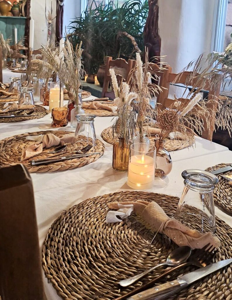 Offrez à vos convives une soirée mémorable entre le charme rustique de nos bâtisses en pierre et les saveurs exquises des plats de Christine, notre maître restaurateur.