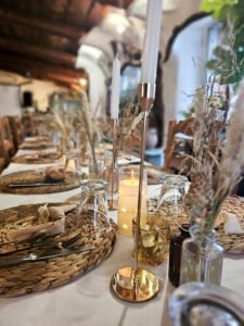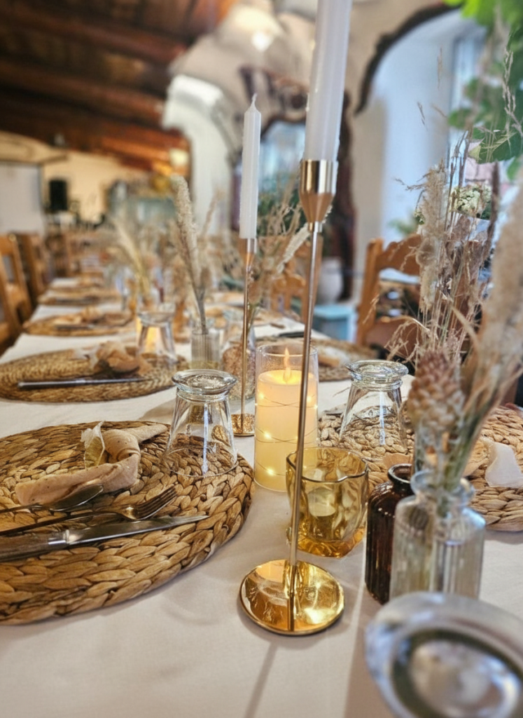 Offrez à vos convives une soirée mémorable entre le charme rustique de nos bâtisses en pierre et les saveurs exquises des plats de Christine, notre maître restaurateur.